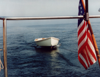 The hull is fiberglass; hand laid by experienced Maine craftsmen. Flotation is sealed into compartments located in the bow, stern. Each boat has Bay of Maine Boat's unique towing eye, fiberglass bow and stern seats, four oarlock sockets, full length extruded rub rail, one pair bronze oarlocks, one pair 7' flat blade spruce oars, and three seats, two of which are rowing positions.