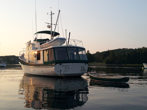 We're Known by The Company We Keep and here's another example: 10’ Kittery Point Tender with her Kadey Krogen 42 headed for the mooring in Nova Scotia homeport harbor.